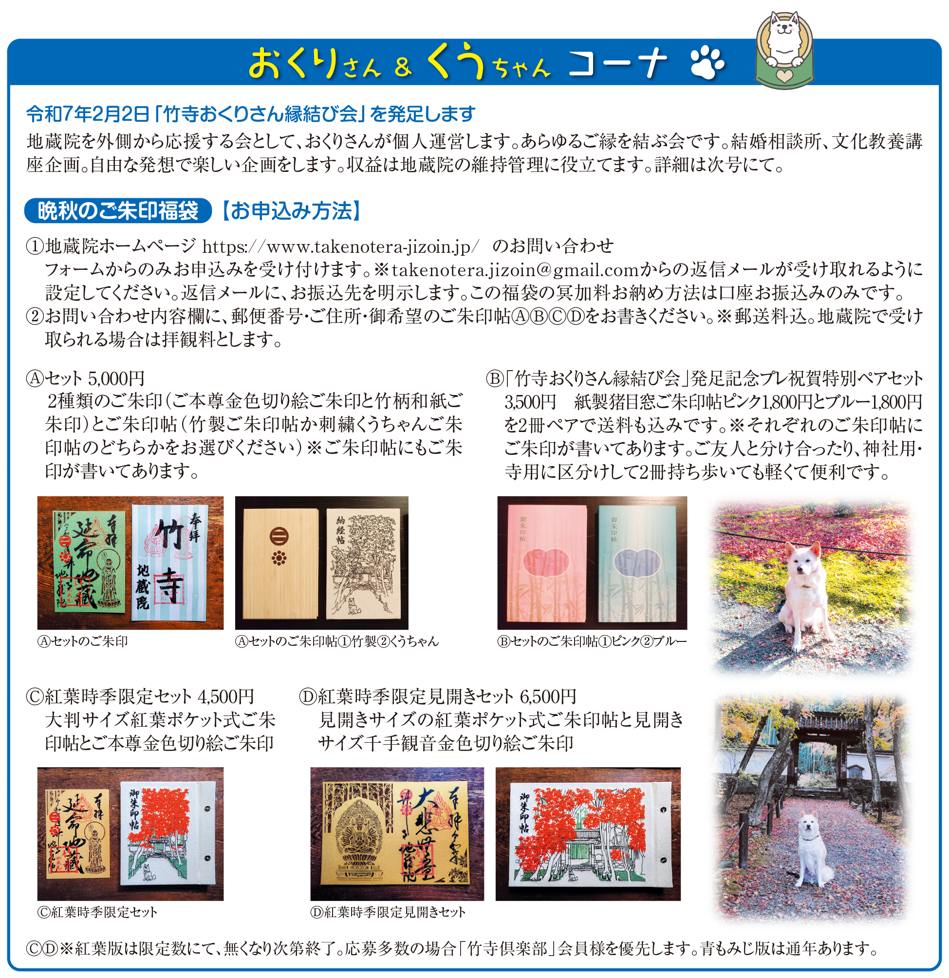 ⒸⒹ※紅葉版は限定数にて、無くなり次第終了。応募多数の場合「竹寺倶楽部」会員様を優先します。青もみじ版は通年あります。